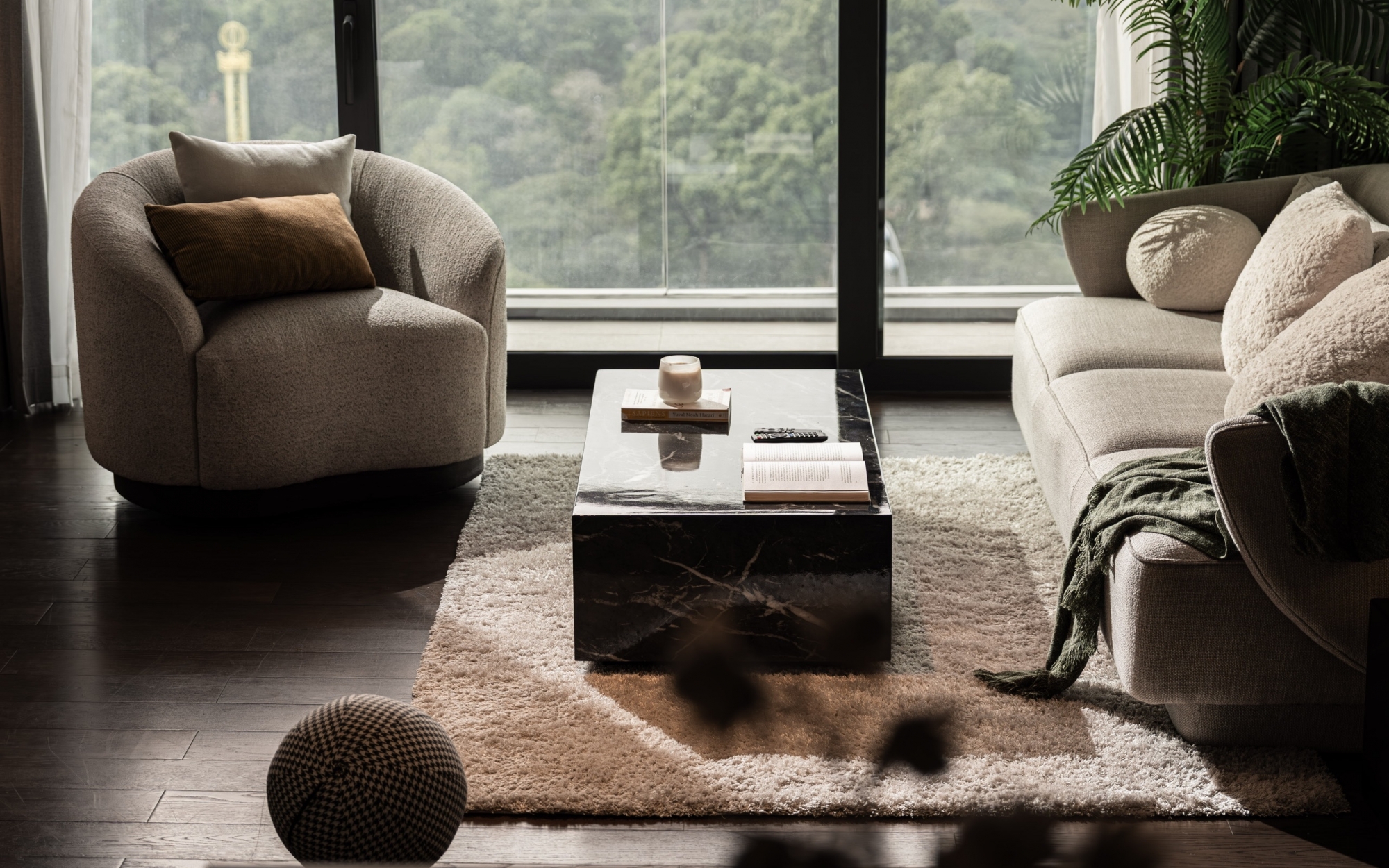 This spacious 107 sqm two bedroom apartment at Grand Marina Saigon offers a modern and elegant living space The bright living room connects to a balcony with a beautiful river view and abundant natural light