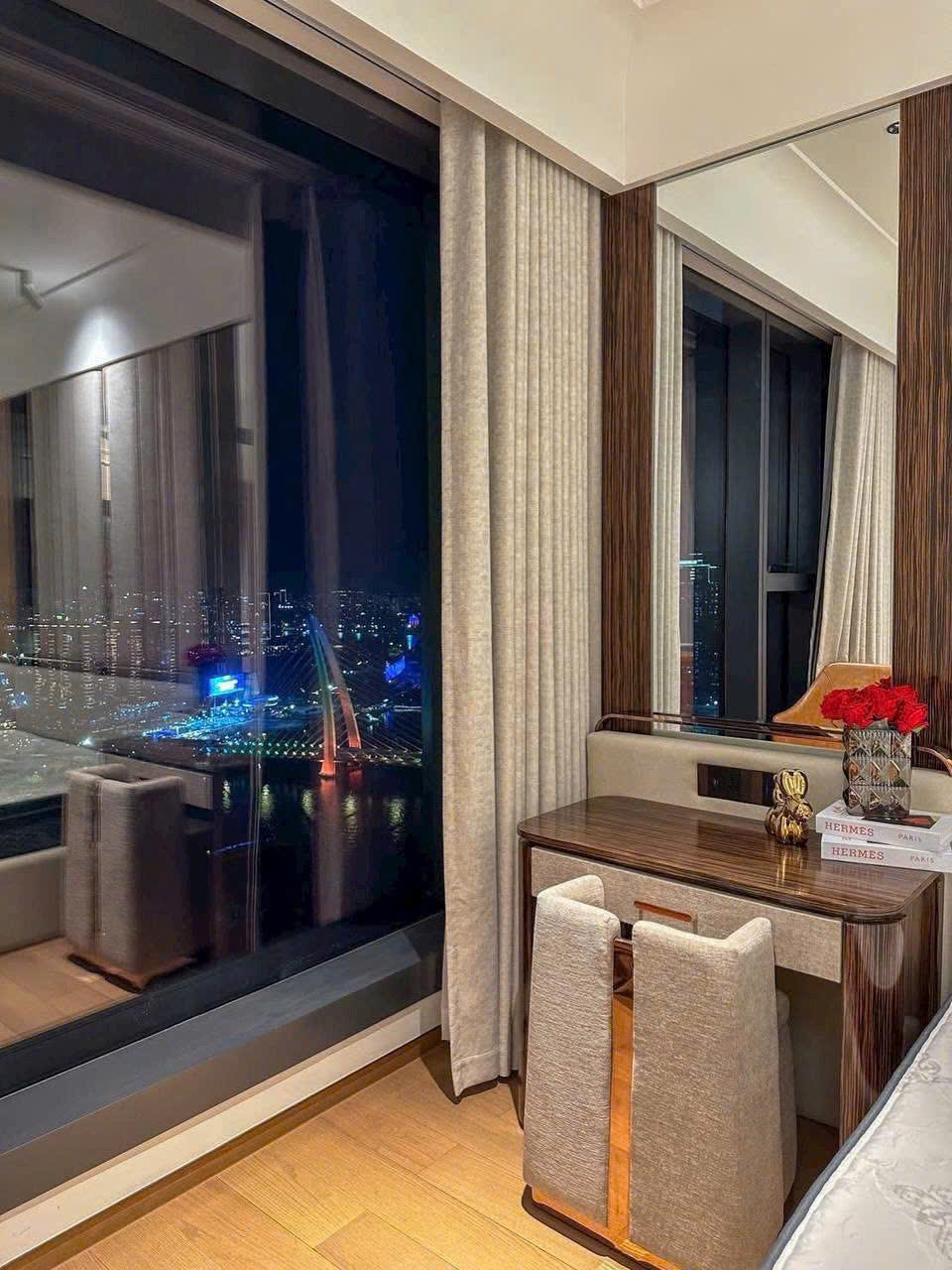 Large windows allow plenty of natural light and offer beautiful views of the Saigon River and city skyline The apartment also overlooks the iconic Bitexco Financial Tower providing a prestigious central living experience